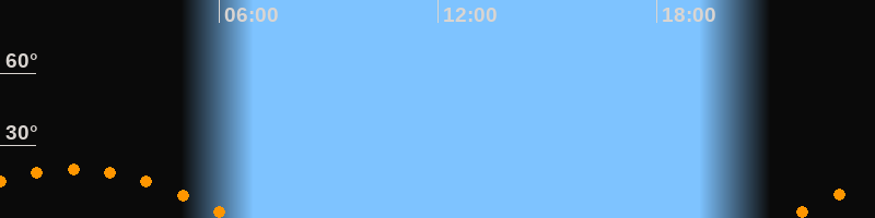 | Untergang | 06:23 Uhr im Südwesten (αAz = 239,4°) |