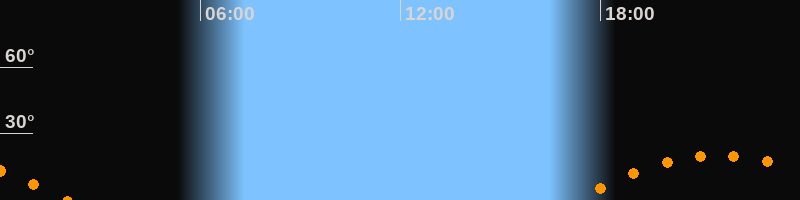 | Aufgang | 17:13 Uhr im Südosten (αAz = 120,6°) |