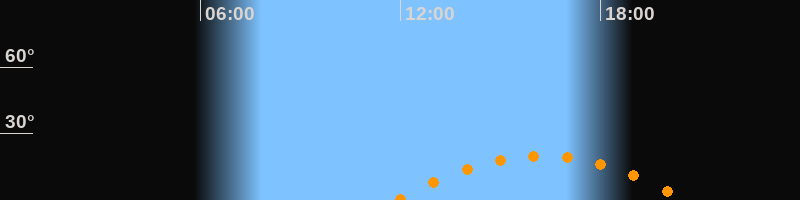 | Höchster Stand (Kulmination) | 16:13 Uhr (h = 20°) |