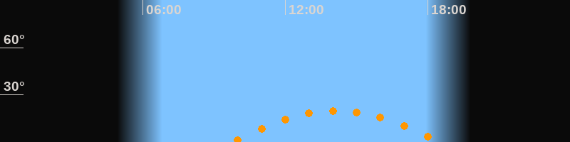 | Höchster Stand (Kulmination) | 14:07 Uhr (h = 20°) |