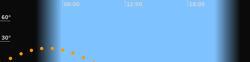 | Aufgang | 00:08 Uhr im Südosten (αAz = 120,6°) |
