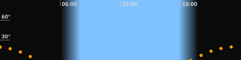 | Untergang | 03:47 Uhr im Südwesten (αAz = 239,4°) |