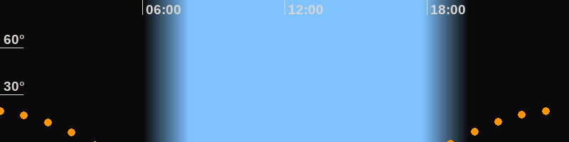 | Aufgang | 19:03 Uhr im Südosten (αAz = 120,6°) |