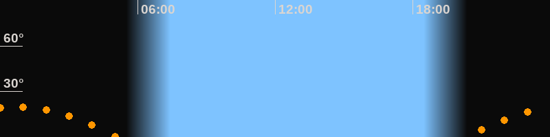 | Aufgang | 20:19 Uhr im Südosten (αAz = 120,6°) |