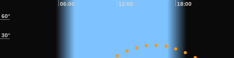 | Aufgang | 11:27 Uhr im Südosten (αAz = 120,6°) |