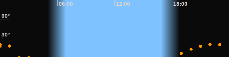 | Aufgang | 18:09 Uhr im Südosten (αAz = 120,6°) |
