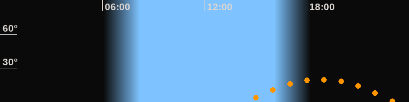 | Aufgang | 14:25 Uhr im Südosten (αAz = 120,6°) |