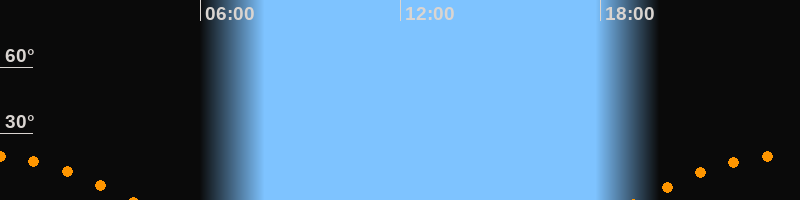 | Aufgang | 19:08 Uhr im Südosten (αAz = 120,6°) |