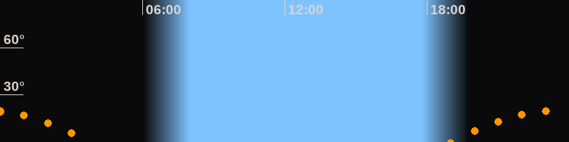 | Untergang | 03:49 Uhr im Südwesten (αAz = 239,4°) |