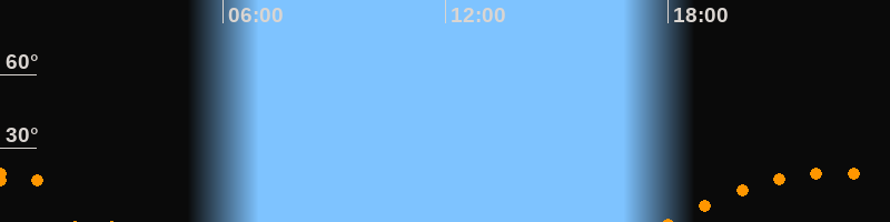 | Aufgang | 18:01 Uhr im Südosten (αAz = 120,6°) |
