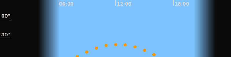 | Höchster Stand (Kulmination) | 12:11 Uhr (h = 20°) |