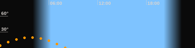| Aufgang | 23:18 Uhr im Südosten (αAz = 120,6°) |