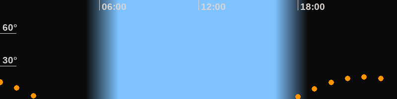 | Aufgang | 17:39 Uhr im Südosten (αAz = 120,6°) |