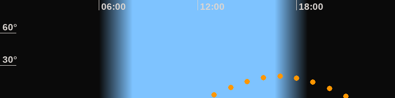 | Höchster Stand (Kulmination) | 16:55 Uhr (h = 20°) |