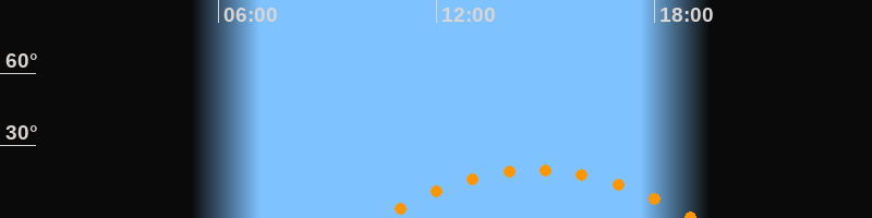 | Höchster Stand (Kulmination) | 14:45 Uhr (h = 20°) |