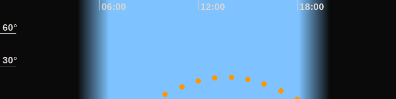 | Höchster Stand (Kulmination) | 13:43 Uhr (h = 20°) |