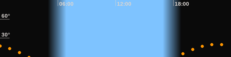 | Aufgang | 18:12 Uhr im Südosten (αAz = 120,6°) |