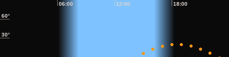 | Höchster Stand (Kulmination) | 18:30 Uhr (h = 20°) |