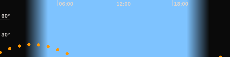 | Untergang | 07:45 Uhr im Südwesten (αAz = 239,4°) |