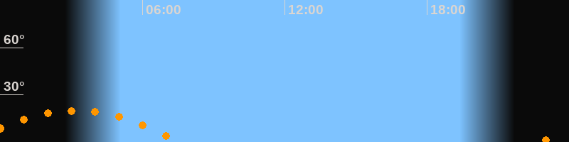 | Aufgang | 22:44 Uhr im Südosten (αAz = 120,6°) |