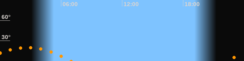 | Untergang | 07:01 Uhr im Südwesten (αAz = 239,4°) |