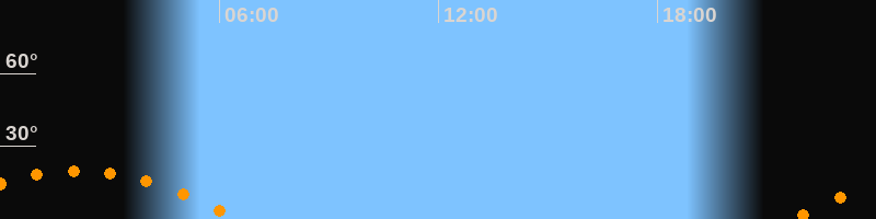 | Untergang | 06:30 Uhr im Südwesten (αAz = 239,4°) |
