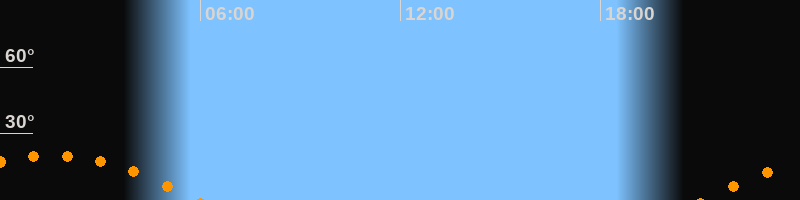 | Untergang | 05:55 Uhr im Südwesten (αAz = 239,4°) |