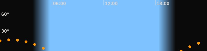 | Untergang | 05:43 Uhr im Südwesten (αAz = 239,4°) |