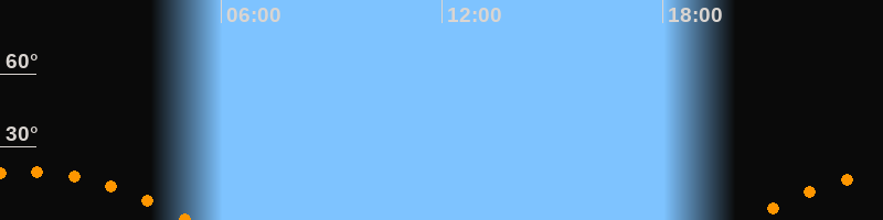 | Untergang | 05:07 Uhr im Südwesten (αAz = 239,4°) |
