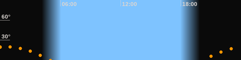 | Untergang | 05:00 Uhr im Südwesten (αAz = 239,4°) |