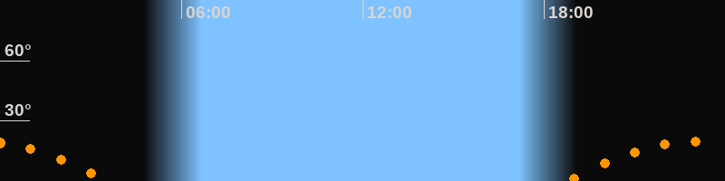 | Aufgang | 18:44 Uhr im Südosten (αAz = 120,6°) |