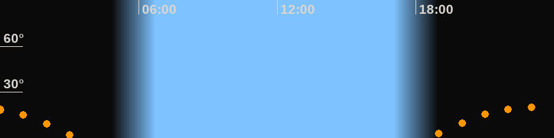 | Aufgang | 18:32 Uhr im Südosten (αAz = 120,6°) |