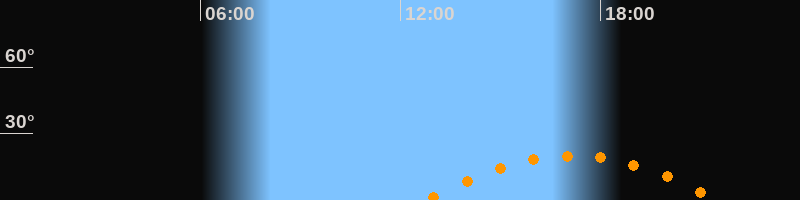 | Höchster Stand (Kulmination) | 17:09 Uhr (h = 20°) |