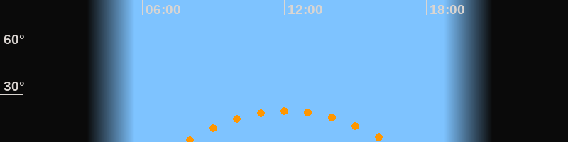| Höchster Stand (Kulmination) | 12:06 Uhr (h = 20°) |