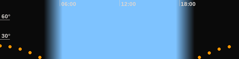 | Untergang | 04:25 Uhr im Südwesten (αAz = 239,4°) |