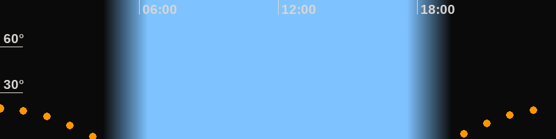 | Aufgang | 19:28 Uhr im Südosten (αAz = 120,6°) |