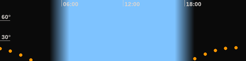 | Aufgang | 18:30 Uhr im Südosten (αAz = 120,6°) |