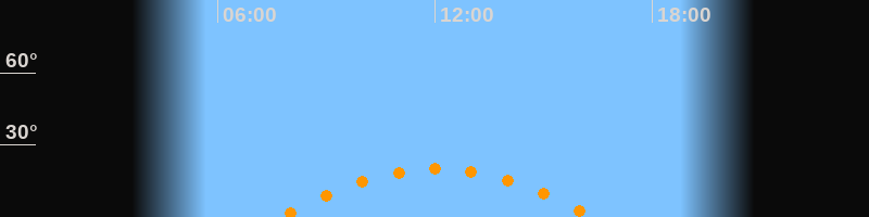 | Höchster Stand (Kulmination) | 12:03 Uhr (h = 20°) |