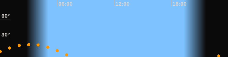 | Aufgang | 22:42 Uhr im Südosten (αAz = 120,6°) |