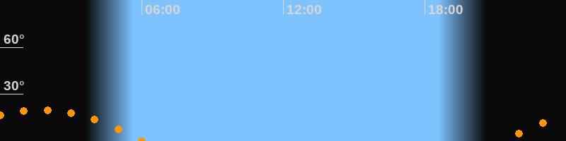 | Untergang | 06:04 Uhr im Südwesten (αAz = 239,4°) |