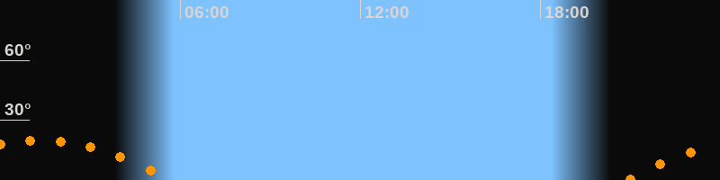 | Untergang | 05:41 Uhr im Südwesten (αAz = 239,4°) |