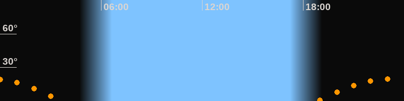 | Aufgang | 18:50 Uhr im Südosten (αAz = 120,6°) |
