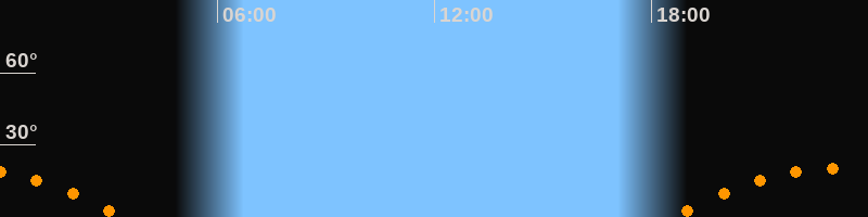 | Untergang | 03:23 Uhr im Südwesten (αAz = 239,4°) |