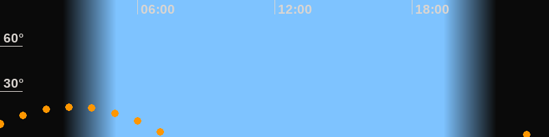 | Aufgang | 22:43 Uhr im Südosten (αAz = 120,6°) |