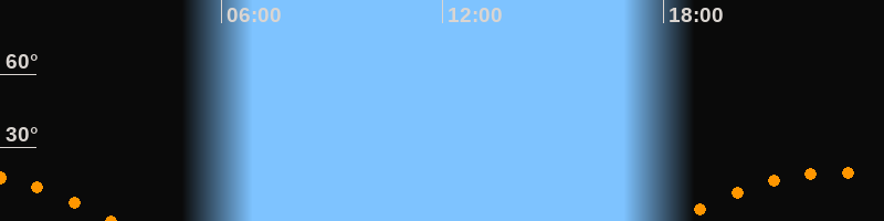 | Aufgang | 18:16 Uhr im Südosten (αAz = 120,6°) |