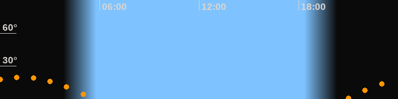 | Untergang | 05:39 Uhr im Südwesten (αAz = 239,4°) |