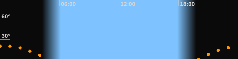 | Untergang | 04:49 Uhr im Südwesten (αAz = 239,4°) |