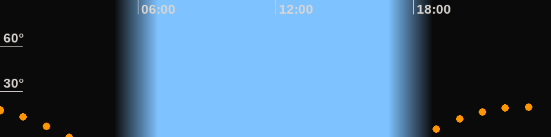 | Aufgang | 18:14 Uhr im Südosten (αAz = 120,6°) |