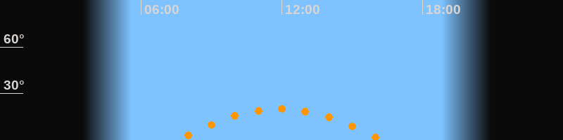| Höchster Stand (Kulmination) | 11:55 Uhr (h = 20°) |