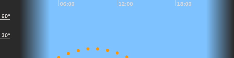 Untergang13:20 Uhr im Südwesten (αAz = 229,6°)